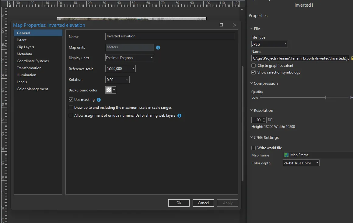 However, if you also have vector symbols on your map, you’ll need to remember to set a reference scale consistent with the original scale. So, for our 34”x44” map our final settings look like this: